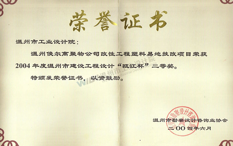 溫州俊爾高聚物公司改性工程塑料異地技改項(xiàng)目 甌江杯二等獎