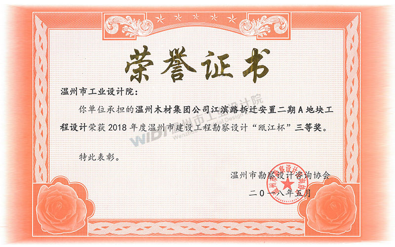 溫州木材集團(tuán)公司江濱路拆遷安置二期A地塊工程設(shè)計(jì) 甌江杯三等獎