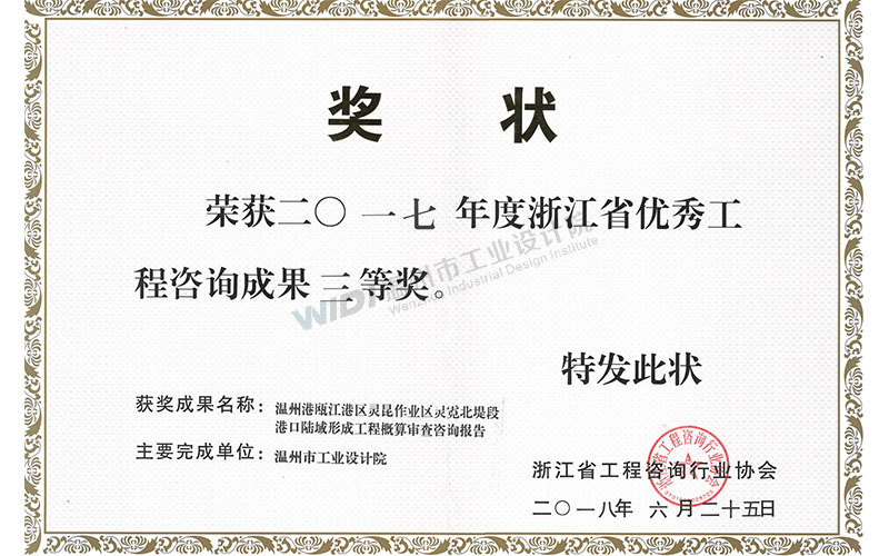 溫州港甌江港區(qū)靈昆作業(yè)區(qū)靈霓北堤段港口陸域形成工程概算審查咨詢報(bào)告 省優(yōu)秀工程咨詢成果三等獎